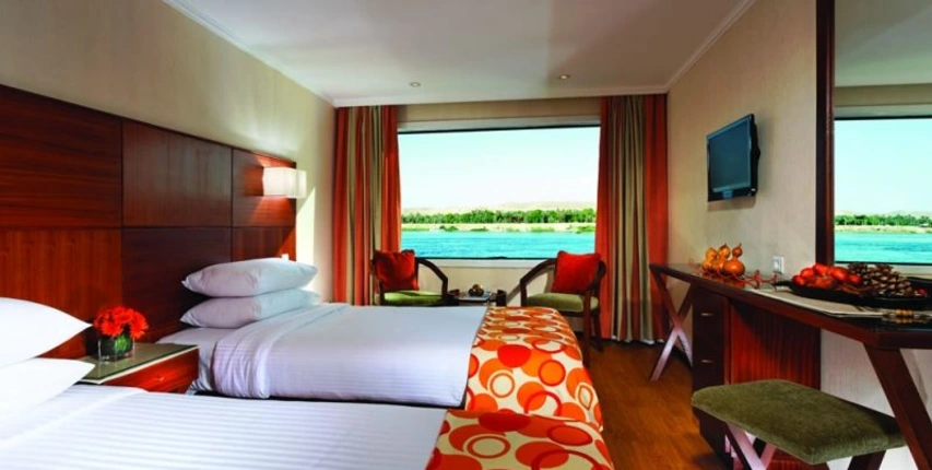 Die MS Radamis II bietet Ihnen die ideale Möglichkeit, die malerische Landschaft entlang des Nils sowie beeindruckende Tempel und antike Gräber zu entdecken. Das Schiff verfügt über fünf Decks, 75 komfortable Doppelkabinen (ca. 18–21 m²) und sechs elegante Suiten.