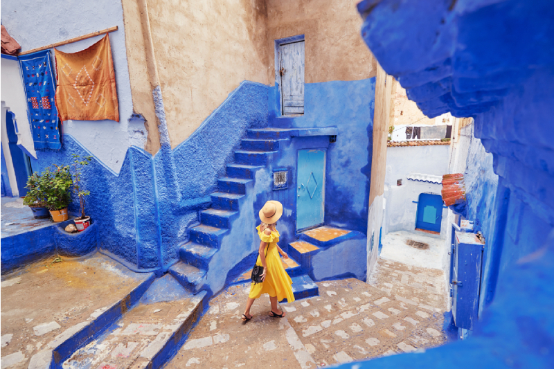Viaje de 9 días por Marruecos visitando Casablanca, Rabat (Chellah, Kasbah de los Oudayas, Torre Hassan), Chefchaouen (Kasbah, Plaza Uta el-Hammam), Meknes (Bab El Mansour, Plaza El Hedim), Volubilis (ruinas romanas), Fez (medina, curtidores, Mellah), Ifrane, Beni Mellal, y Marrakech (Jardines Majorelle y Menara, Palacio Bahía, Mezquita Koutoubia, Jamaa El Fnaa), finalizando en Casablanca (Mezquita Hassan II, Corniche de Ain Diab, Barrio Habous).