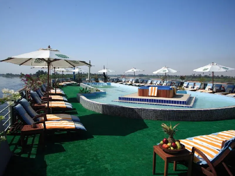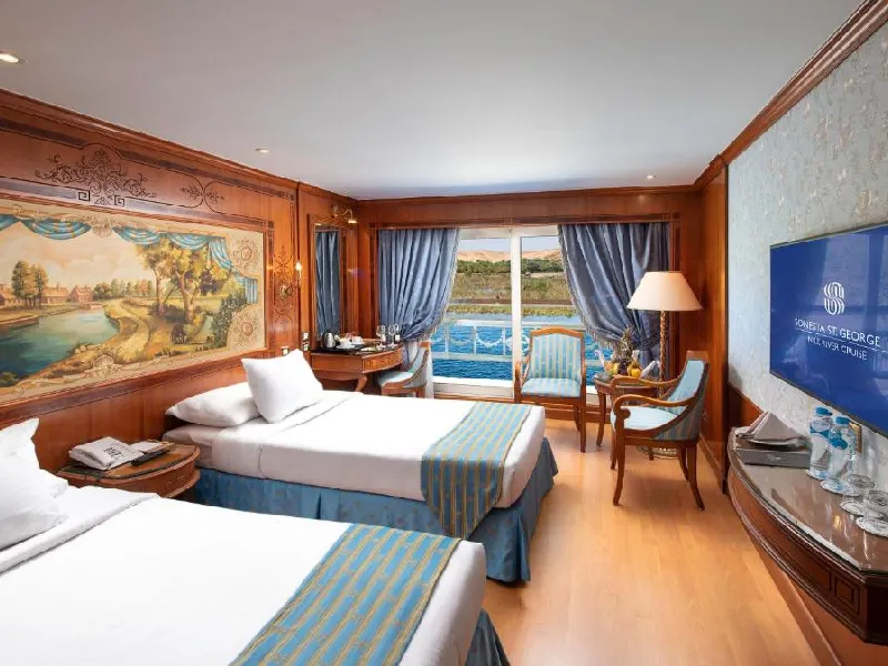 Embárcate en una experiencia de lujo a bordo del crucero Sonesta St. George por el Nilo, navegando entre Luxor y Asuán. Disfruta de servicio de primera, gastronomía gourmet, spa, piscina y cabinas con vistas al río mientras recorres los templos más famosos de Egipto junto a un guía egiptólogo en español. Vive la historia del Antiguo Egipto con el máximo confort, instalaciones exclusivas y todas las comodidades necesarias para una travesía inolvidable en el legendario Nilo.